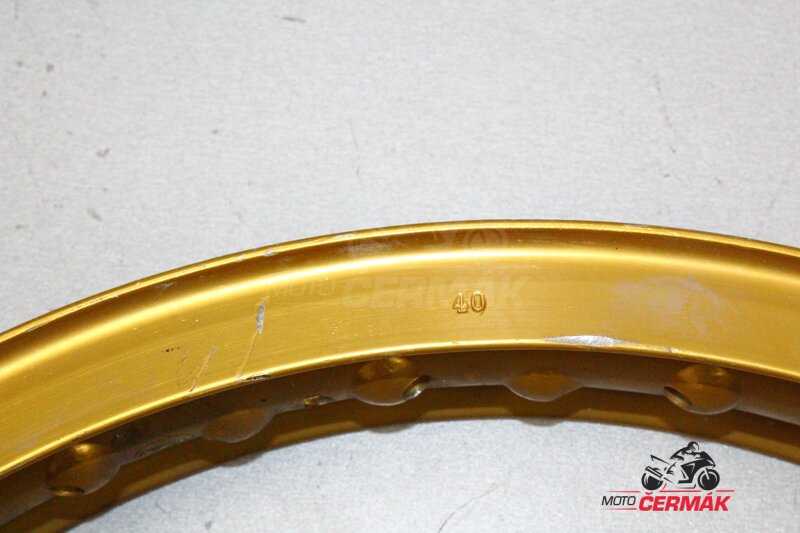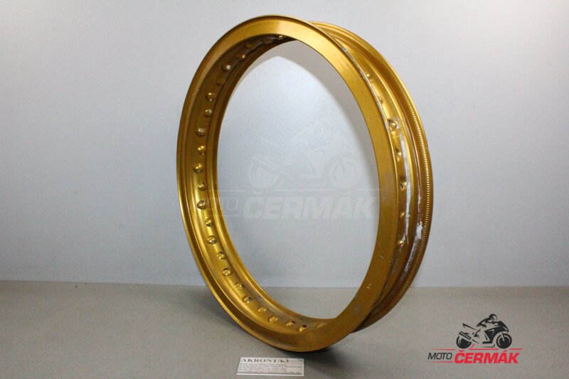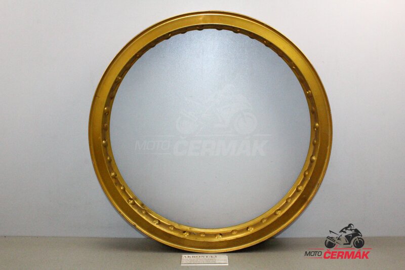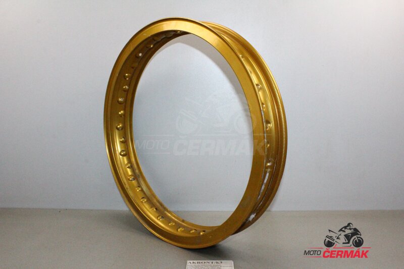 Použítý hliníkový ráfek AKRONT 40 otvorů pro dráty. Použitý, pěkný stav (zlatý elox).